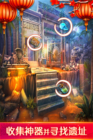 15、第十四关点开右侧挂红布的地方,在右侧柱子与石块间的阴影处。