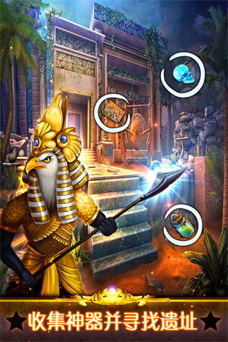 5、返回点击图4处,用钩子将法老雕塑后面打开。出现一个类似三角形的物品,点击收集。