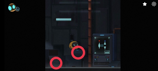 第三关,关掉电源,像图一一样关掉这个位置电源,脚下踩得箱子是从左下角画圈那里拿的( 截图时已经关了这边电源了_(:3 ⌒)_)。