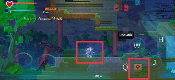 1、在游戏中玩家将利用左下角左右按钮操控角色的移动,右边w跳跃、H向前冲、Q和J是攻击;