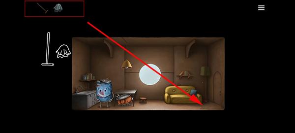 2、我们先跟着游戏的指引按键点击,其中一步需要我们用抹布和木棍组合成拖把,然后把门口的水渍擦干净。