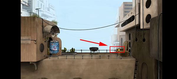 4、当我们不知道下一步该干嘛时我们就可以尝试到处走走,游戏就会给出提示,比如到这后就需要我们进去房间,将刚刚捡的小球给小狗,小狗会走出房间,我们跟着出去。