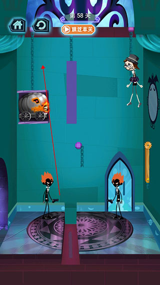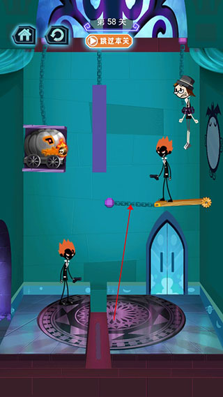 5、这一关,考验的是我们的速度,只要在安全地带割断绳子,火柴人就可以成功出逃。
