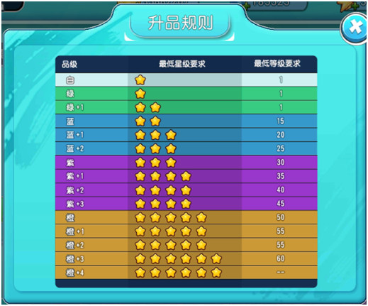 从升品规则里可以看出,精灵的品质升级需要达到最低星级要求和最低等级要求,这就需要升星和升精灵经验了,而需要准备的有升星材料美丽鳞片和升级材料经验糖果了,可以说是环环相扣,触发门槛条件即可完成升品。
