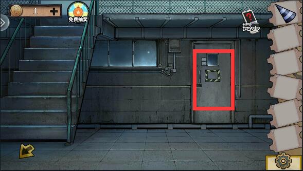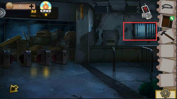 6、回到下水道,用钥匙打开图中的锁,获得木板,然后去警卫室,用小刀划开垃圾桶,使用夹子得到湿纸片,放到警卫室的灯上面烘干,获得下水道密码箱的密码;