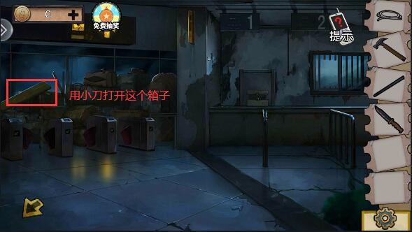 3、回到第二关,那个箱子处,用小刀打开箱子获得玩具枪;
