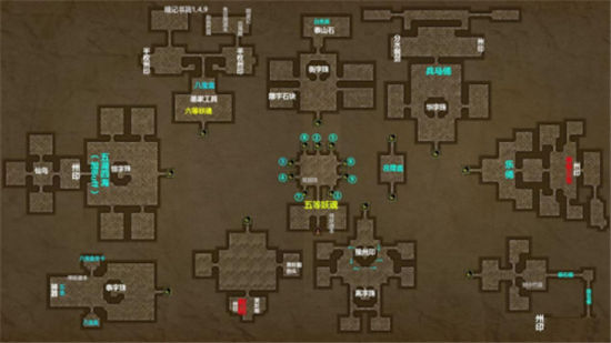 五岳:除了泰珠是用泰山石开,其他的都用雕字石块开门。有一个华字珠要在看到五岳后去下一个州的房间拿。