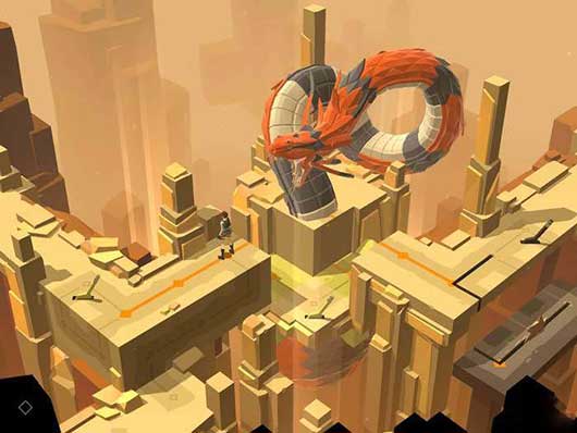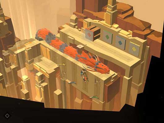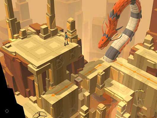 这个时候触发红色机关就能将立柱推下,正好砸在巨蟒长长的身体上。巨蟒逃回了洞中,我们也就能顺利地通过本关的关卡了。