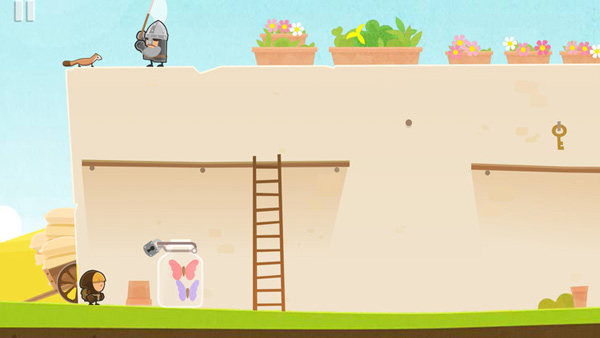 6、游戏还有一些目标是不能直接取到的,像上图中的蝴蝶已经被锁锁住,所以咱们需要先找钥匙,所以先上楼梯,这里说明一下,如果你和士兵不在同伊水平线上,不管你做什么他都是发现不了的,所以可以放心大胆的去做。