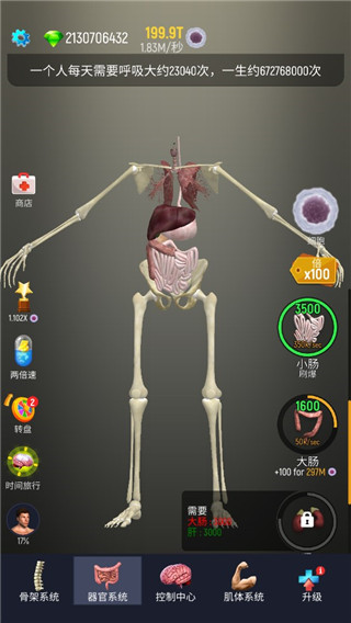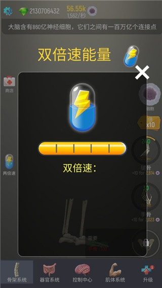 2、从最先的骨架开始解锁,小编这里拥有无限制钻石所以直接用钻石购买了100T的细胞开始养成;