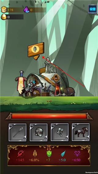 4、来到商店门口即可为自己恢复血量,点击即可进入装备界面,拖动相同等级的装备即可将它们进行合成。