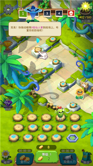 3、将合成好的仙人掌放置在战场,建立你的防线。