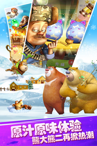 1、根据今年最火的热播动画巨作《熊出没》改编,具有雪地气息的度假场景;2、在传统塔防上简化操作,增强丰富性,让你体会到雪地的别样乐趣;