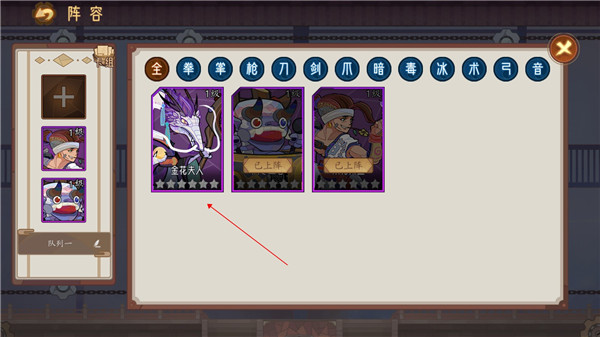 2、有了新的卡牌可以在【阵容】里安排它们出战。