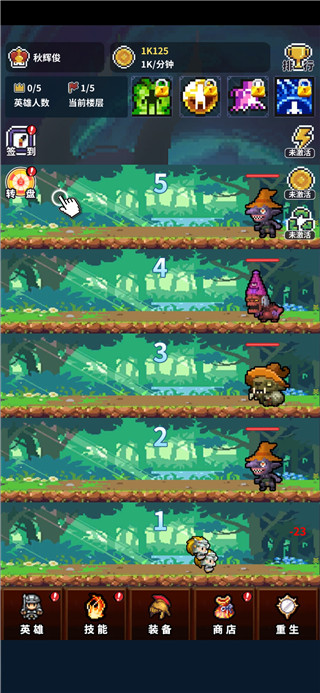 1、游戏开始后,点击对应的层次就可以在哪里召唤出英雄,每次召唤最多可以召唤五个,之后需要等待一会才能继续。