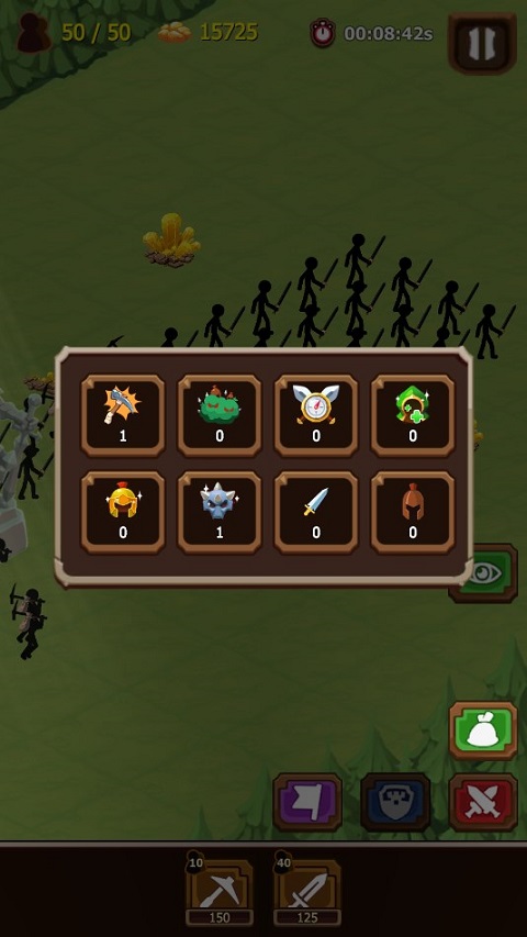4、底部的两个按钮可以用于购入新的火柴人,不断增加场上己方的作战人数;