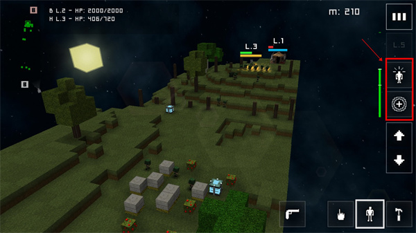 6、点击右下角的创造按钮,你可以通过放置方块、炮塔、炸弹等来构建精心设计的强大防御系统;