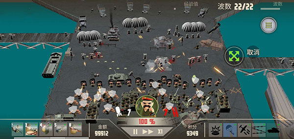 游戏目前涵盖数十种级别、4种被动技能和5种主动技能,每一轮可以选择不同的部队类型,随着游戏进度的推进,还将开放不同升级道具。你也可根据战争形势排兵布阵。