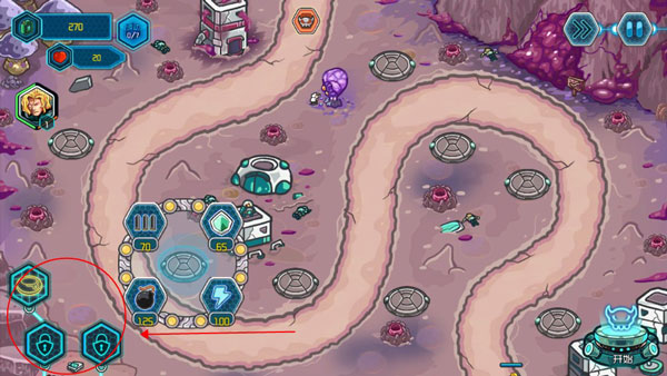 2、游戏中在塔防的布局上也相当具有特色,玩家将依照游戏给定的位置进行防御塔的设置,期间四款不同类型的战斗防御,可以给予玩家更多的选择性,通过沿路线布局,并合理有效的利用每种防御的特点来进行抵抗,游戏中还有三种不同功能的战斗辅助可以帮助玩家更轻松的战斗,这三种功能分别为英雄、机器人以及定位导弹。
