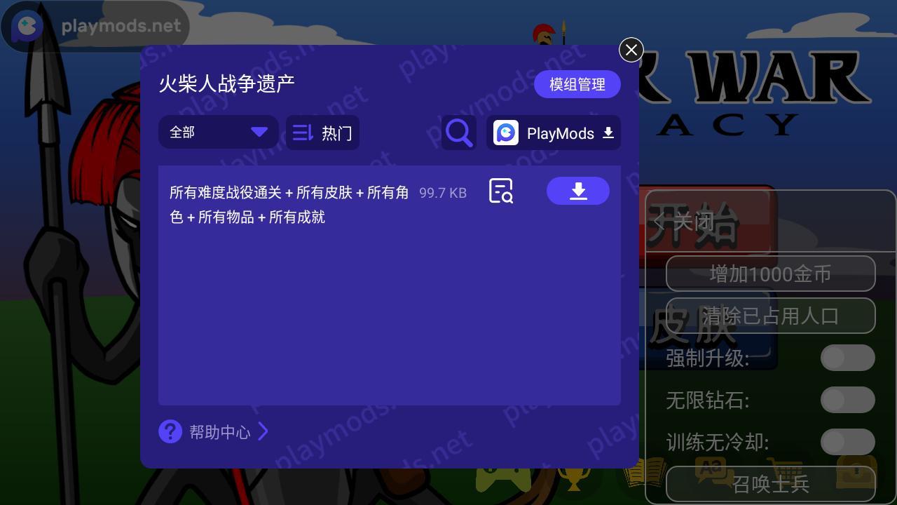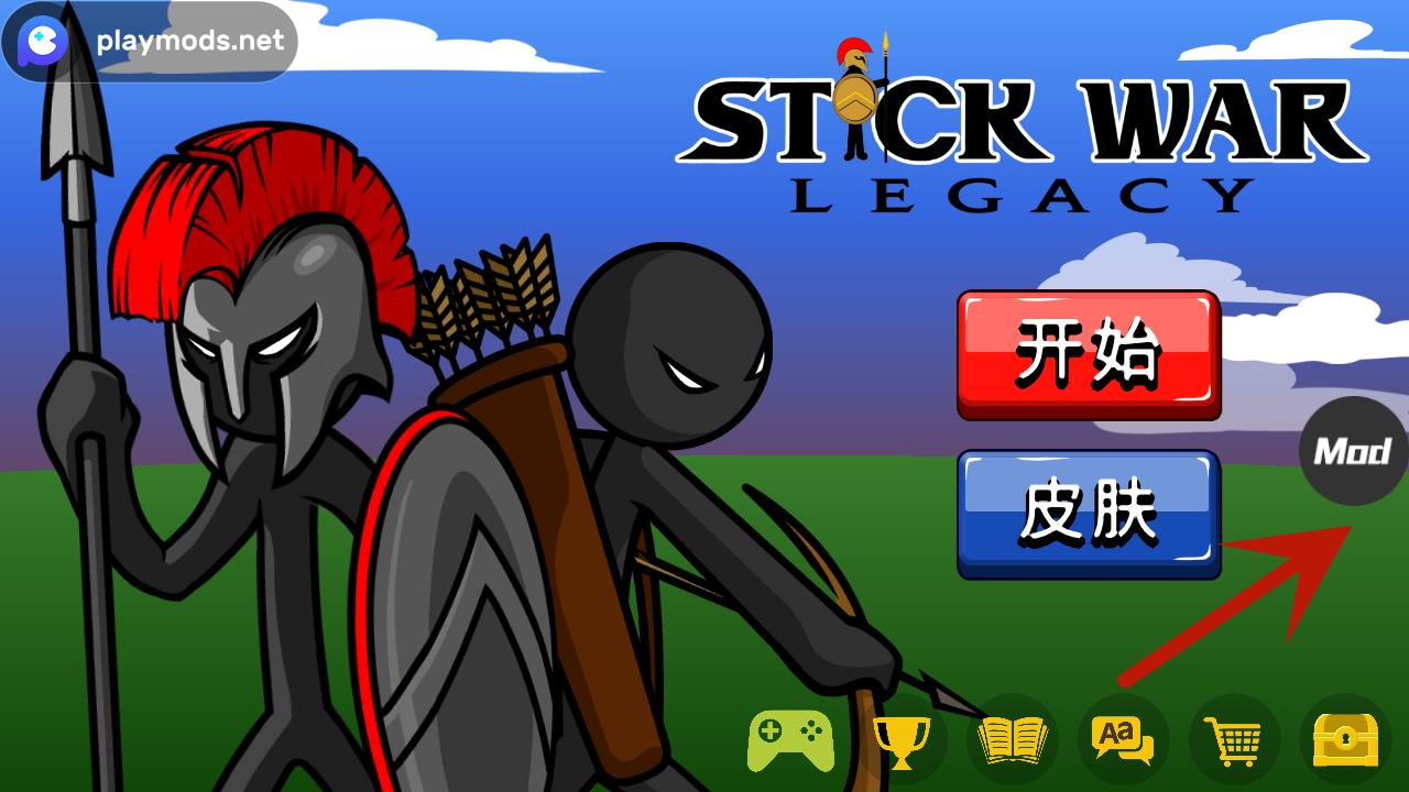 1、下载安装火柴人战争遗产2内置mod菜单版后,运行游戏即可发现画面中有个“Mod”按钮;