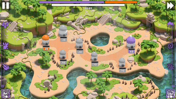 游戏开始时你将拥有一座或多座屯有兵力的堡垒,你的目标是占领那些未被开拓的堡垒,一步步囤积士兵,运用谋略与智慧消灭其他敌方士兵,赢得战局胜利。