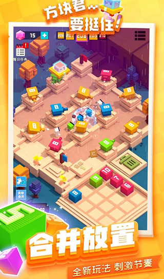 1、击败boss收集大量的卡牌,然后可以用这些卡牌来增强你的战斗能力2、游戏的玩法非常的简单有趣,收集大量的金币来升级合成你的方块君