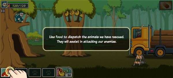 值得一提的是森林防御战猴子传奇游戏不同于一般塔防游戏,除了大波动物会在游戏过程中逐步解锁,还有新增了为猴子量身打造的一系列专属技能,比如爆头椰壳、神秘啤酒、肉搏竹棒、疯狂的黄蜂和破釜沉舟等千奇百怪搞笑非常的招式。而这些技能或是直接助长猴子攻击力,或是通过它传送给小伙伴们,让它们在战斗中如虎添翼,相当给力。此外,猴子传奇最新版中为了配合森林的主题,游戏画面也铺上一片一片的翠绿,小动物们虽然不是走纯萌路线,但是生动活泼的动态效果也值得一看,音效则是走“简约而不简单”的路线,没有任何华丽丽的特效,简单低沉却又极具震撼力的背景音乐很好地衬托了紧张激烈的游戏气氛。没有抢戏,而是实现了与整个游戏相得益彰的完美配合,感兴趣的小伙伴还在等什么,快来下载体验一下吧。