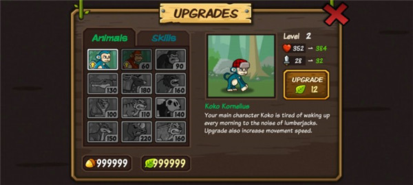 发现并升级猩猩,熊猫,香蕉和这个野外世界里其他更多独特的角色和技能,它们都有自己特殊的能力。