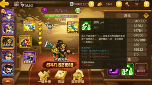 张飞一技能可以全体攻击,这一点是比关羽有优势的,也就意味着可以更快地推副本。