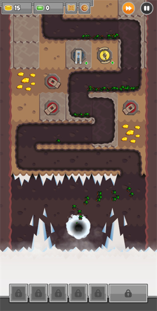 在挖掘到期间你需要有所注意,玩家所挖掘出来的道路便是敌人前进的通道,这并不是让你在固定路线中搭建防御塔迎击敌人,你需要合理的安排敌人的攻击路线,根据路线来安装防御塔。需要注意的挖掘防卫者游戏中地形分为软硬两种土质,要分清防御塔所适应的地形土质是什么样,这样才能更容易发挥防御塔的全部功能,在挖掘的过程中还可以挖掘出金矿等资源物品,这些对能否建造出强力的防御塔起到关键作用。还在等什么,有兴趣的小伙伴快来下载游戏闯关吧!