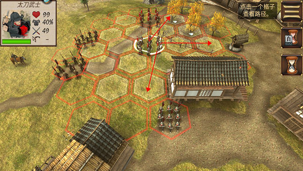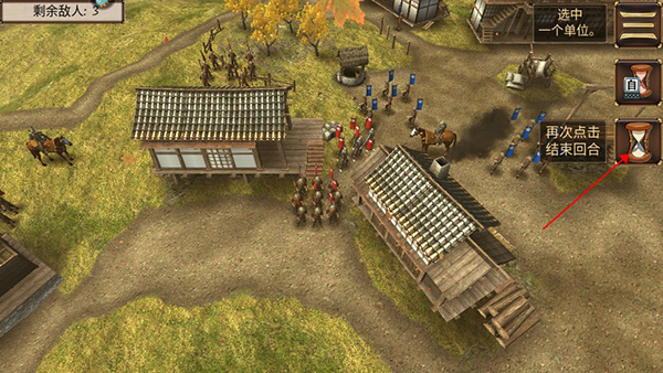 调整部队会消耗步数,玩家需要点击右边沙漏,进入敌方回合,等待敌方移动完之后,又能获得步数。慢慢移动到地方附近,等到可以攻击地方之后,直接选择地方部队进行进攻