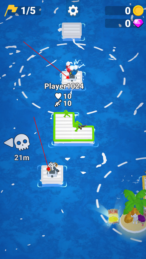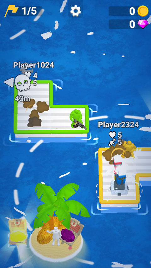 木筏之战手游是一款io类型的多人对战游戏,玩家需要在海上航行,寻找您的木筏部件,扩大您的领土并组建团队以击败他们!选择一种颜色,用漂浮在海洋中的其他碎片来强化您的木筏,并正面面对对手!你可以通过从救生圈上拿起火柴人来扩大你的团队,他们将成为你军队的一部分!您的船员越大,您在海战中生存的机会就越大!如果你足够幸运,你甚至可以收集防御塔!那么它也将成为您的木筏部件!您还可以购买额外的引擎和许多其他元素,以增强您的防御和攻击力!