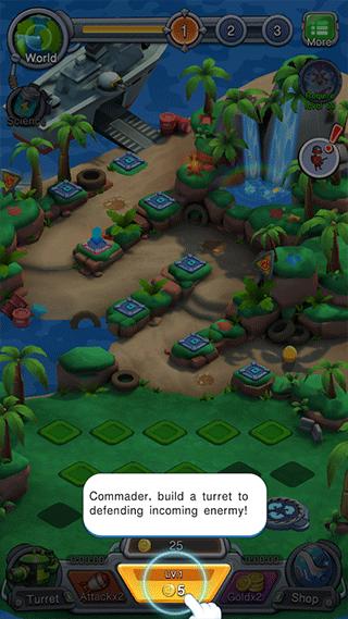 1、在本站下载安装好士兵捍卫者手机版后,打开进入,点击底部的金币购买炮塔。