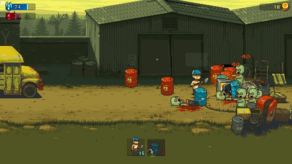 在画面上本作还是延续了系列游戏独有的精致像素风格,在色彩上多以灰暗色调为主,末世氛围的营造方面做得相当不错。很快,一众幸存者就乘坐着一辆黄色校车来到了某个据点,然后老司机告诉我们取得胜利的方法就是将前方的路障破坏掉,这样才能深入到城市中获取更多的资源,拉拢更多的小伙伴。