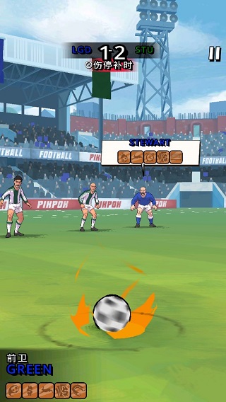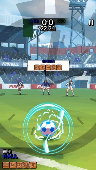 当然,实际比赛的过程与“足球”二字并没有太大关系。在主队控球时,玩家只需要点划屏幕,即可将皮球传递给球路上对应的队友。通常成功传递三到四脚之后就可以进入射门区域。在没有贴身防守的情况下,玩家就可以直接起脚射门(向球门方向划屏)。也可能是对着传球划动,不停球就大力施射。游戏中也存在任意球、角球和点球,不过频率要比真实比赛要少许多,毕竟这并不是一部主打拟真的足球游戏,相关的规则判定要宽松许多。
