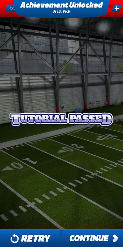10、完成以上技巧,就算成功掌握了橄榄球四分位手游的基本要领。现在点击右下角的CONTINUE按钮即可开始正式的比赛了。