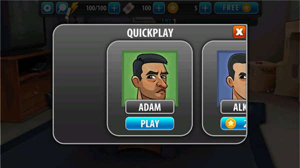 1、选择界面QUICKPLAY开始挑战2、点击选择关卡进入,选择角色进入画面