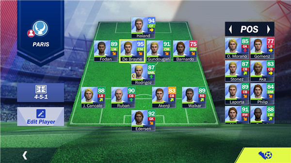 3、打造一支终极球队,培养您的11位超级球员,升级技能,强化能力,成为联赛精英。