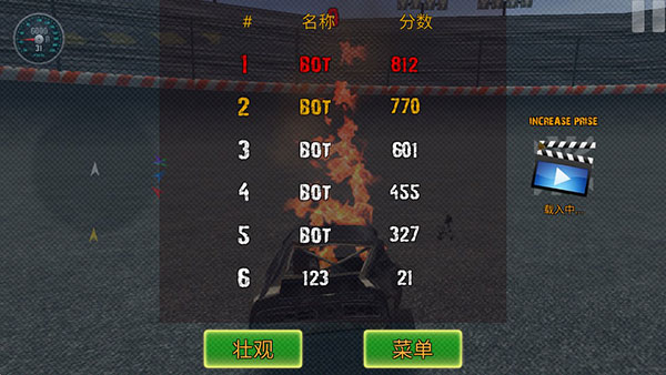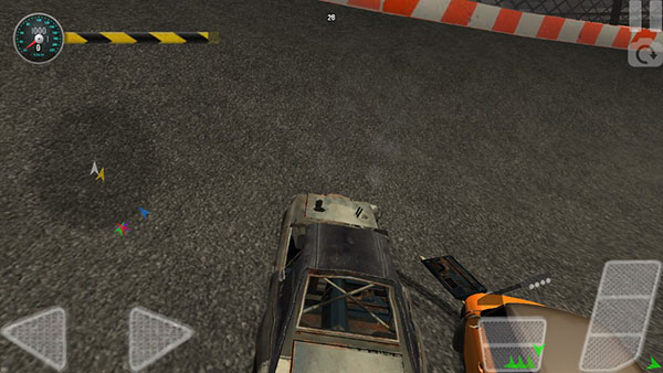 4、操控你的赛车尽情相撞,破坏吧!左边方向,右边油门,刹车,左上角是码表,中间是地图