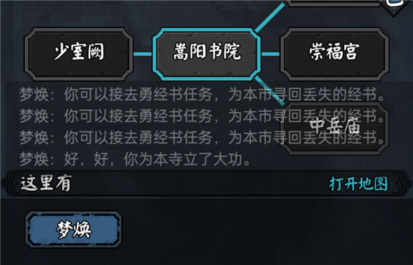 ⑥不要的残页可以到【嵩山】【嵩阳书院】交给梦焕换潜能,也没必要给他(差那点潜能吗,建议扔掉),因为给予是表面看似能选你不要的经书,实际上是按照从上到下的顺序自动给的(害我攒的占卜和大学等书不见了)。