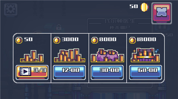 4、但是一般小关卡结束后的金币就只够买一滴血,氪金方面,这款游戏可以算不氪金,10块钱就有18888金币,够玩家买好多把枪了,这点很人性,优秀。