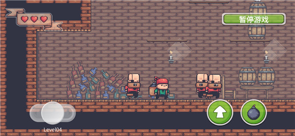 1、游戏中玩家可以通过最简单的左右移动和跳跃放置玩法来进行游戏的闯关冒险,不需要玩家花里胡哨的操作手法,游戏上手很快。2、玩家也可以通过细微的操作手法来躲避游戏中敌人的攻击,并且回击战胜敌人获取游戏的胜利,更快的通关。