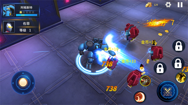 4、无数的财宝,精彩的战斗,刺激的冒险在等着你。游戏每个角色都有3个技能,强力酷炫。