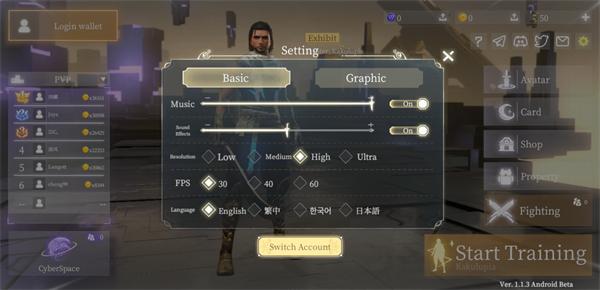 2、点击右上角设置可以进行各种基础设置和画面设置,玩家可以根据手机的性能与个人喜好进行相关设置。