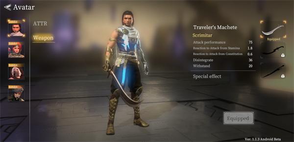 4、在进入游戏前可以设置当前角色的装备,还可以查看每种装备的属性,玩家可以根据需要进行选择。