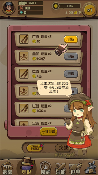 3、根据系统的提示升级武器,进入强化系统锻造强大的武器。