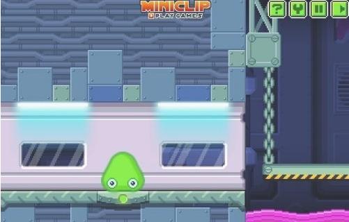 合适的操控粘液向上运动,注意不要被激光扫射到。