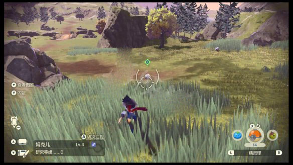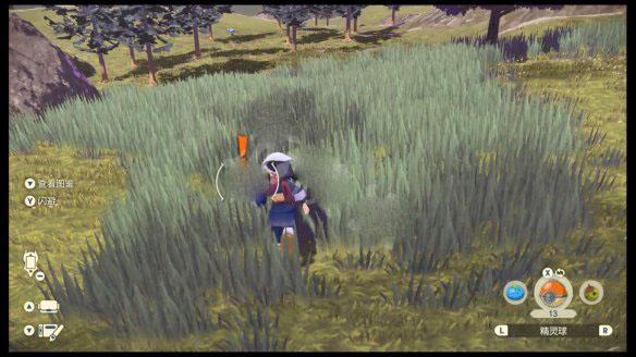 首先,为了让目标处在精灵球的投掷范围内,玩家需要先靠近目标宝可梦。一些宝可梦在注意到玩家时会逃跑。此时就需要蹲下轻推左摇杆移动,并利用草丛、岩石等作为掩护来接近目标。