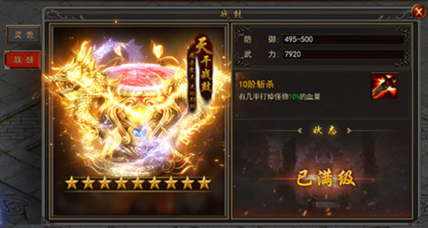 3、战鼓等级越高,触发斩杀的几率越高,斩掉的血量百分比越高。