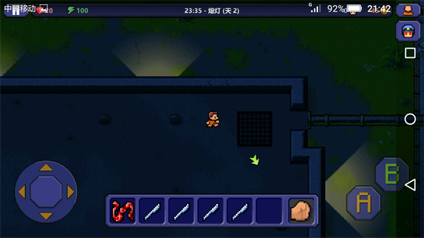 6、在这里,之前做好的绳子就有用处了。用这根绳子从屋顶爬下来。之后,用白天拿到的塑料刀来切割围栏。于是,就通关了。